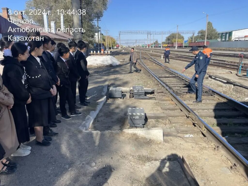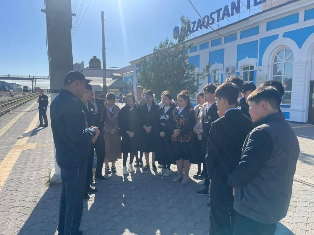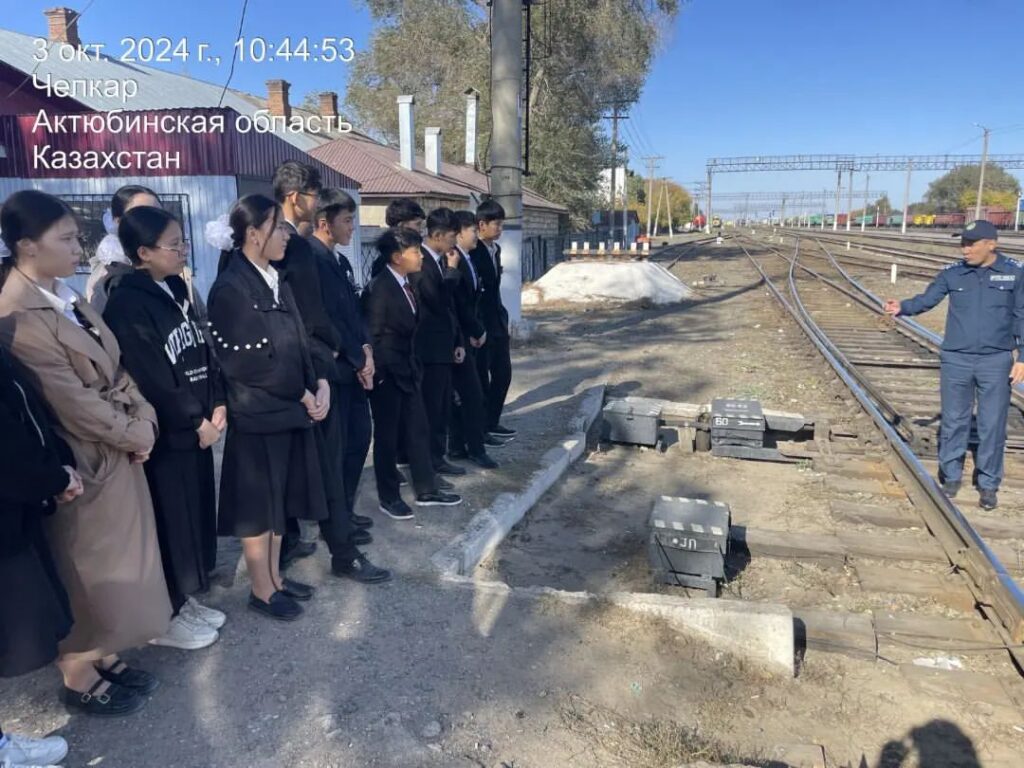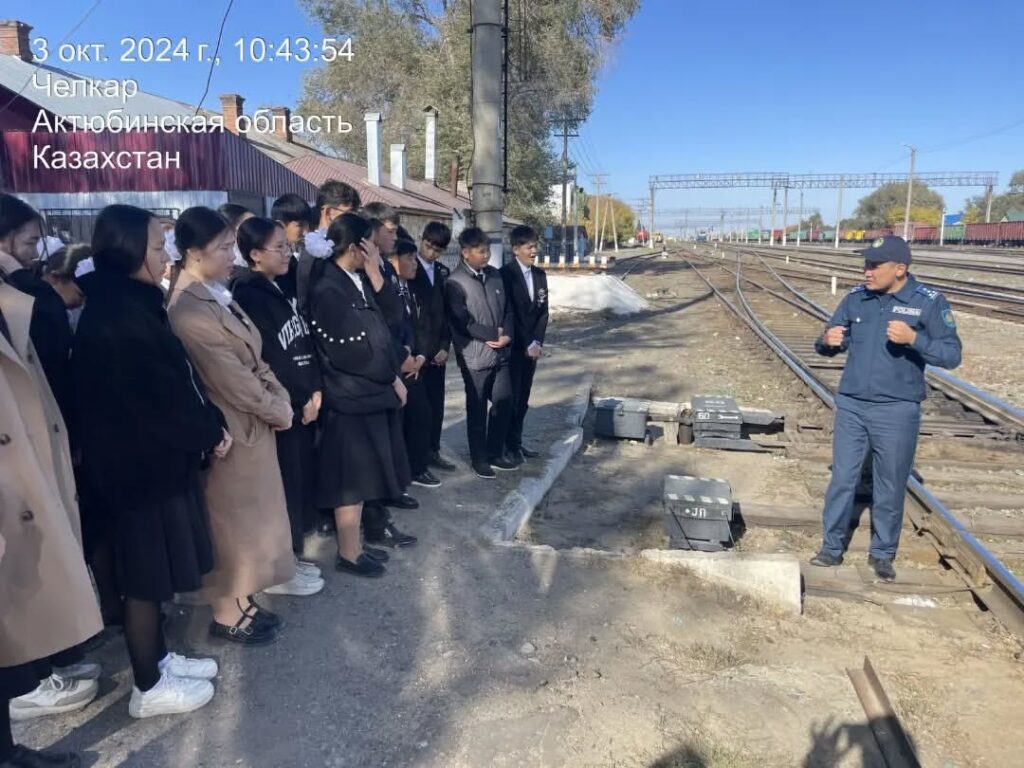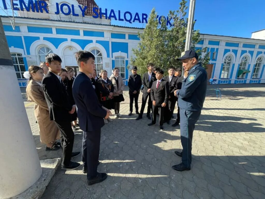 Шалқар станциясының Желілік полиция бөлімшесінің қызмет ету аумағында жазатайым оқиғаларын болдырмауға және алдын алу үшін «І.Үргенішбаев атындағы ЖОББМ» КММ-нің 9 «а» сыныбының оқушыларына Шалқар ст ЖПБ-нің бастығы полиция капитаны Кулманов Ернұр Сарсенбаевичтің қатысуымен Шалқар станциясының темір жол вокзалына профилактикалық түсіндірме жұмыстарын жүргізді.